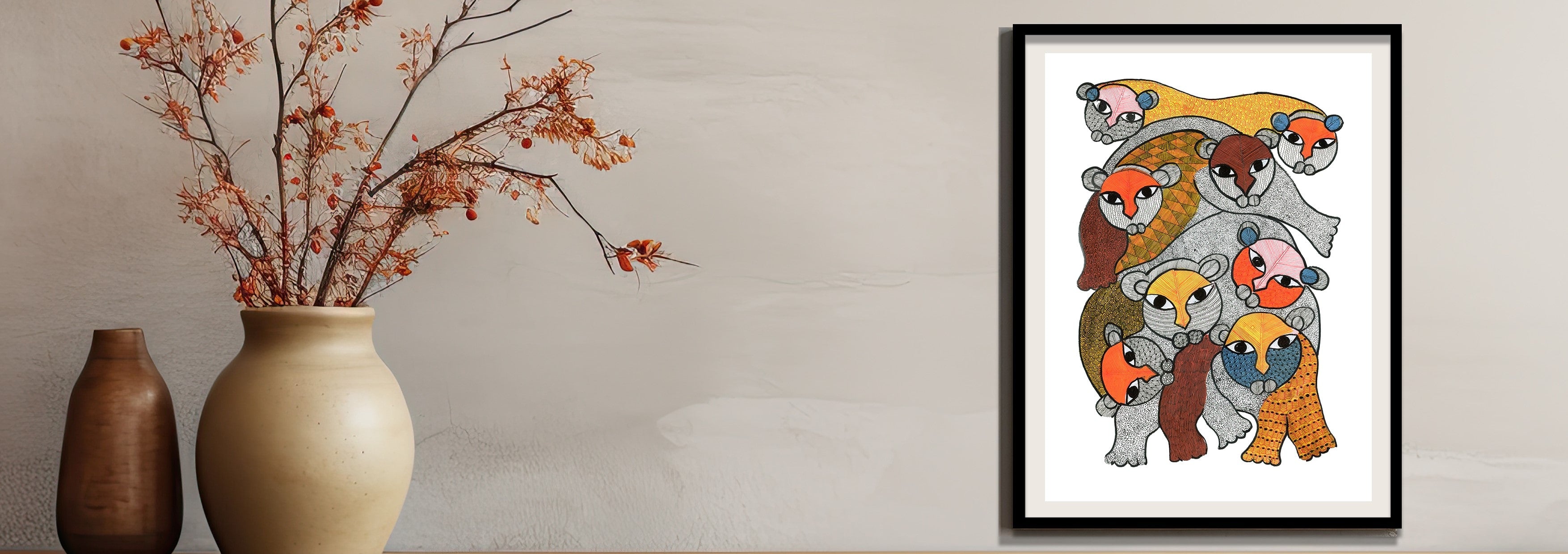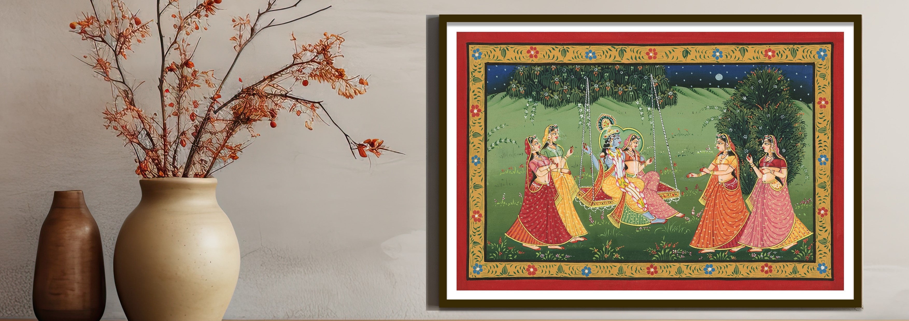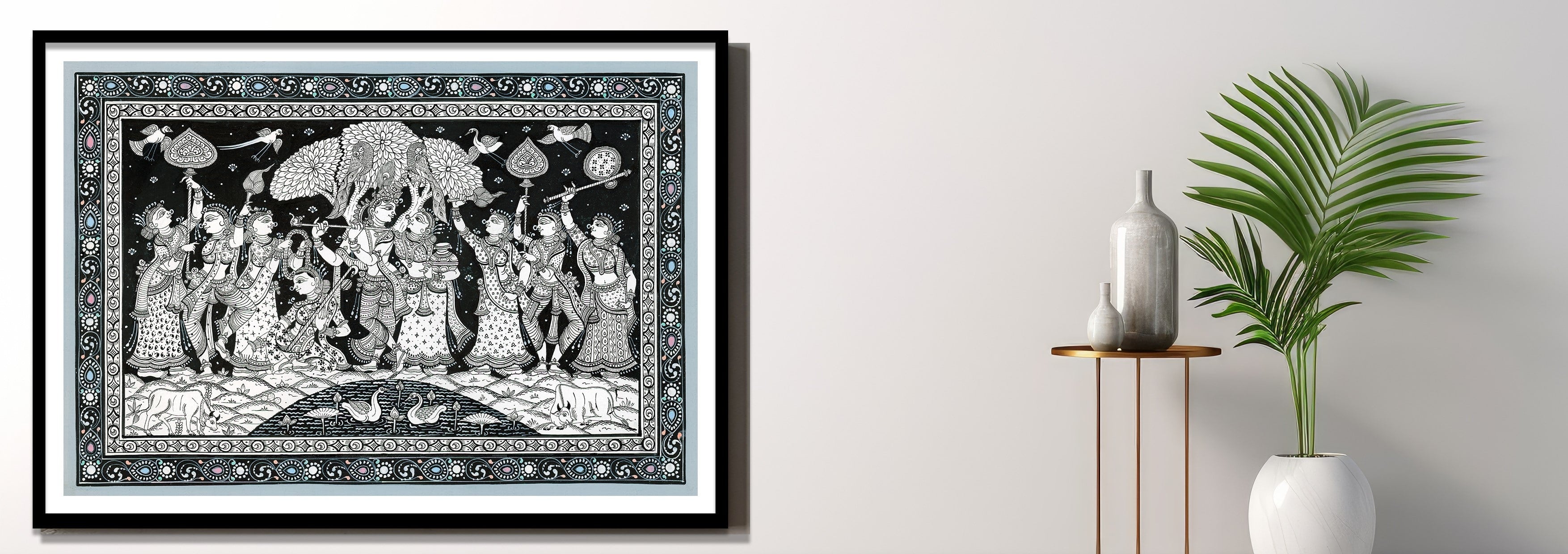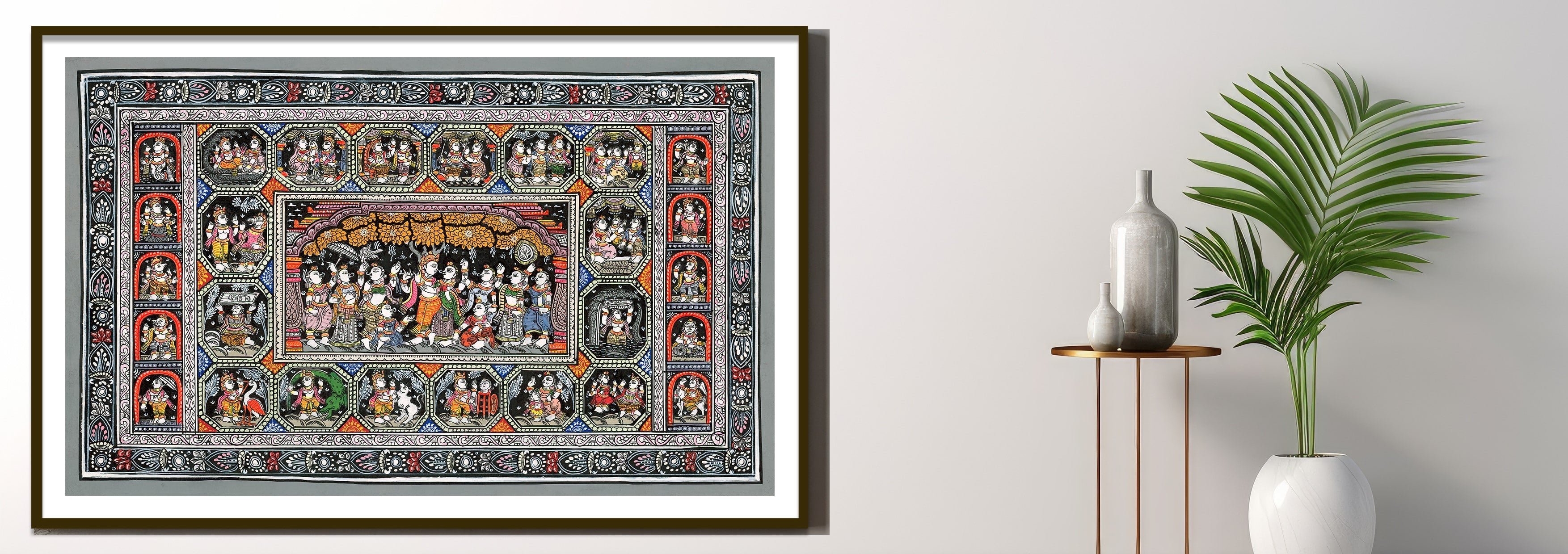 Explore the rich tradition of storytelling through Indian paintings at Stories by Heritage. Our curated collection features exquisite Madhubani, Rajasthani, Kalighat, Gond, and Pattachitra art prints, each telling unique tales...